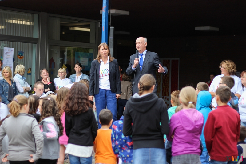 14.06.2014 - „Kunterbunt und in Bewegung“! So lautete das Motto unseres Schulfestes, das am Samstag den 14.6.2014 auf unserem Schulhof stattfand. Alle vier Jahre feiern wir unser Schulfest und auch in diesem Jahr können wir zu Recht behaupten: „Es war ein voller Erfolg“. Durch das großartige Engagement von Eltern, den Mitgliedern des Fördervereins, unseren Schülerinnen und Schülern, dem Lehrerkollegium und ansässigen Vereinen wurde