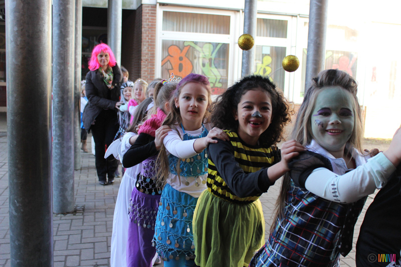 Kurz vor der großen Pause starteten die 3. und 4. Klässler eine lautstarke und fröhliche Polonaise durch das ganze Selmi-Gebäude. Auch sie durften anschließend in die Turnhalle zur Zauberin.