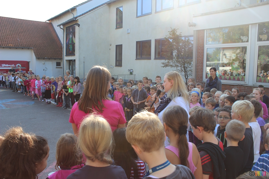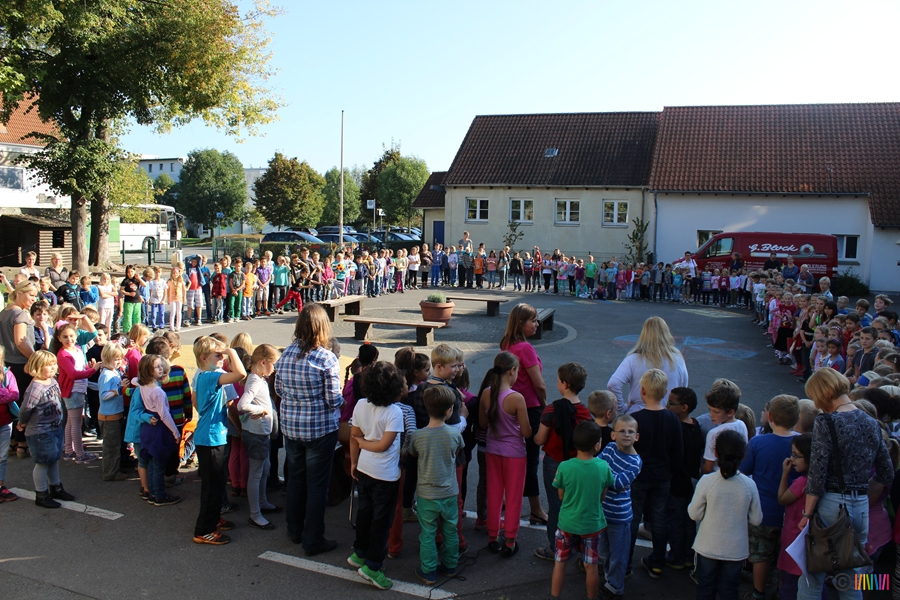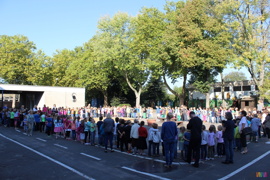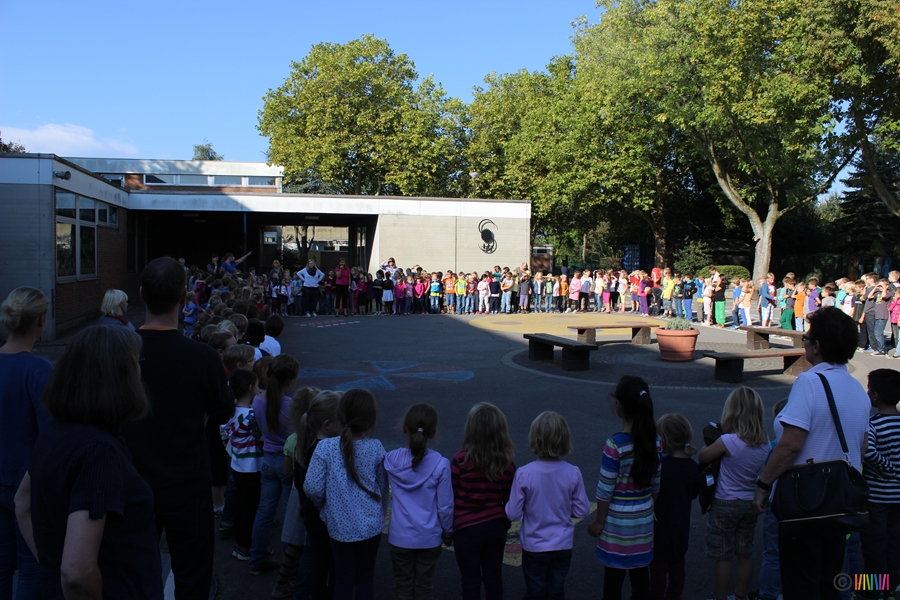 18.09.2014 - Seit August freuen wir uns, eine neue Konrektorin an unserer Schule haben zu dürfen. Jessica Krämer übernimmt nun viele wichtige Aufgaben, steht Frau Schilhabel-Henning zur Seite, ist Klassenlehrerin eines ersten Schuljahres und somit eine neue, tolle Kollegin an unserer Seite. Um sie gebührend willkommen zu heißen, trafen sich am 18.09. alle 'Selmis' auf dem Schulhof. Nach einer Willkommensrede und einem von allen gesungenen Lied haben wir Frau Krämer so noch einmal ganz offiziell in unseren Selmi-Kreis aufgenommen.