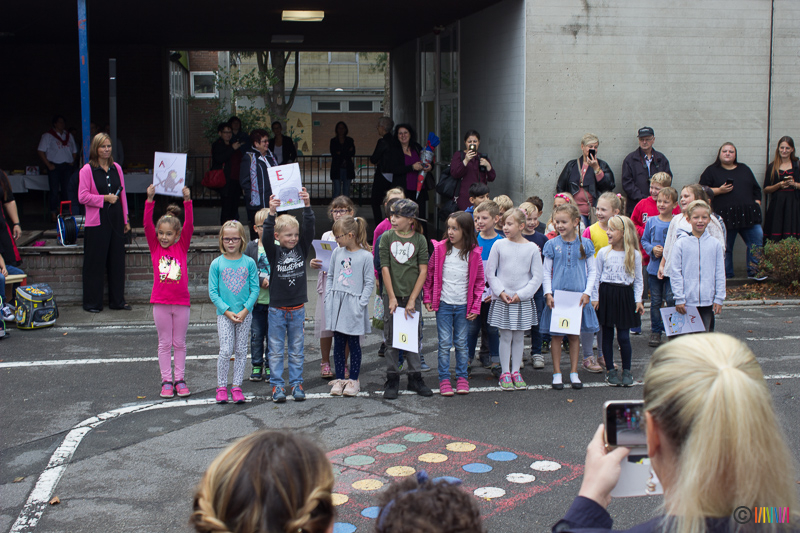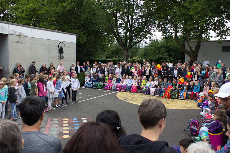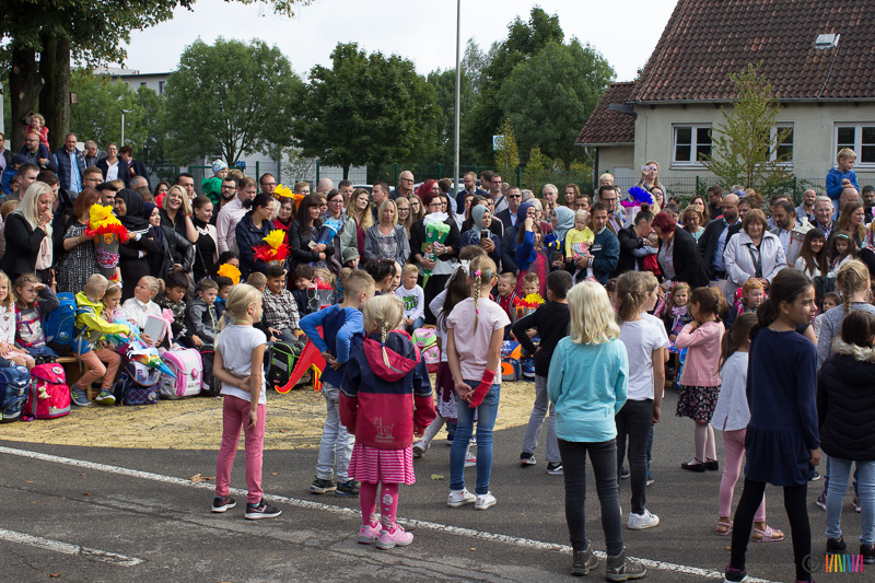 30.08.2018 - Herzlich Willkommen an der Selmigerheideschule! Am heutigen Donnerstag war es für 76 neue Erstklässlerinnen und Erstklässler so weit. Der erste Schultag an der Selmi! Auf dem Schulhof wurden die Kinder von den aktuellen Zweitklässlern mit dem Lied "Alle Kinder lernen Lesen" empfangen. Weitere Zweitklässler luden die Neuankömmlinge zu dem gemeinsamen Tanz "Up, Down Turn Around", ein, ehe es wenig später für die Drachen, Waschbären und Eulen in ihre neuen Klassenräume zur ersten Schulstunde ging. Währenddessen wurden Eltern, Großeltern und weitere Familienangehörige der Erstklässler vom Förderverein sowie von Eltern der 2. Klasse zu Kaffee und Kuchen eingeladen. Vielen herzlichen Dank an dieser Stelle für die köstliche Bewirtung.