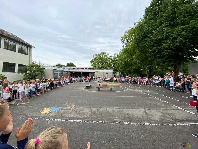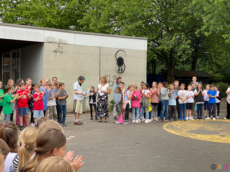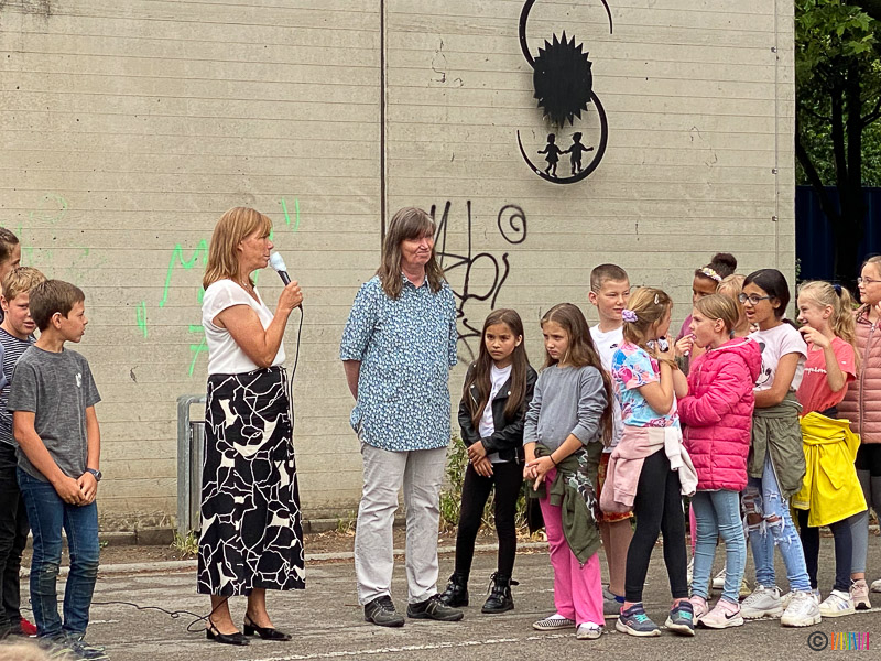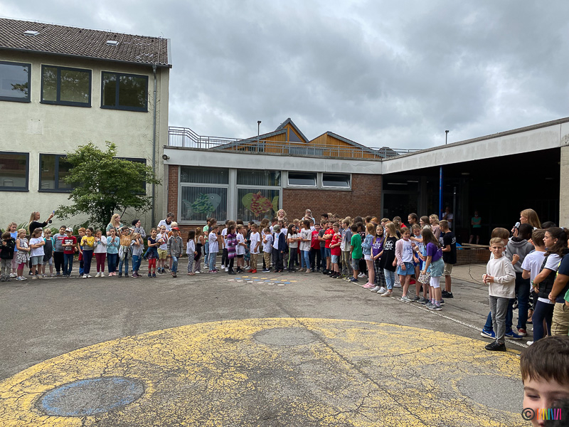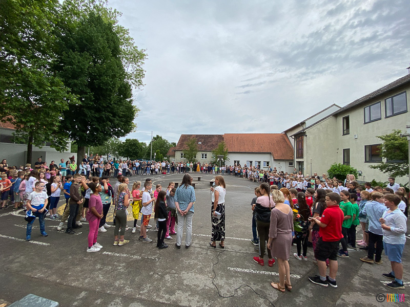 24.06.2022 - Verabschiedung der 4. Klässler sowie von Frau Beckheuer. Am letzten Schultag des Schuljahres 2021/2022 flossen neben vielen Regentropfen auch die Tränen. Die Schülerinnen und Schüler der 4. Klasse verbrachten ihren letzten Schultag an ihrer Selmi und verabschiedeten sich von ihr und ihren Lehrerinnen. Durch das traditionelle Enthüllen der Stele wurden die zukünftigen Fünftklässler an die weiterführenden Schulen "entlassen". Wir wünschen allen viel Erfolg auf dem weiteren Lebensweg. Ebenso mussten wir uns heute von einer langjährigen Kollegin verabschieden. Frau Beckheuer wird im kommenden Schuljahr nicht mehr an der Selmigerheideschule unterrichten und den wohlverdienten Ruhestand antreten. Wir bedanken uns für die schöne Zeit und wünschen ihr alles Gute für die Zukunft.