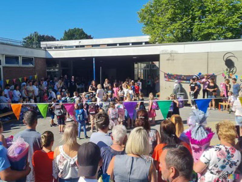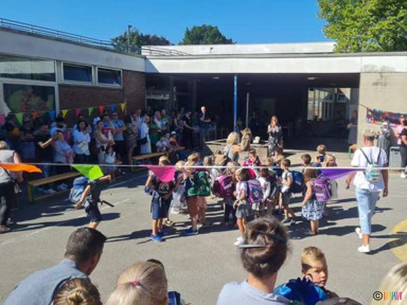 11.08.2022 - Endlich, am heutigen Donnerstag war es für die neuen Erstklässlerinnen und Erstklässler so weit. Der erste Schultag an der Selmi! Bei strahlendem Sonnenschein wurden die Kinder dieses Jahr von allen Selmis mit einem Begrüßungslied auf dem Schulhof empfangen. Weitere Zweitklässler luden die Neuankömmlinge zu einem gemeinsamen, farbenfrohen Tanz ein, ehe es wenig später für die Schildkröten, Wombats und Seehunde in ihre neuen Klassenräume zur ersten Schulstunde ging. Währenddessen wurden Eltern, Großeltern und weitere Familienangehörige der Erstklässler vom Förderverein sowie von Eltern der 2. Klasse zu Kaffee und Kuchen eingeladen. Vielen herzlichen Dank an dieser Stelle für die köstliche Bewirtung.