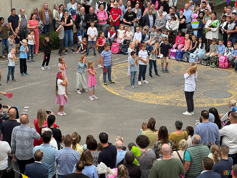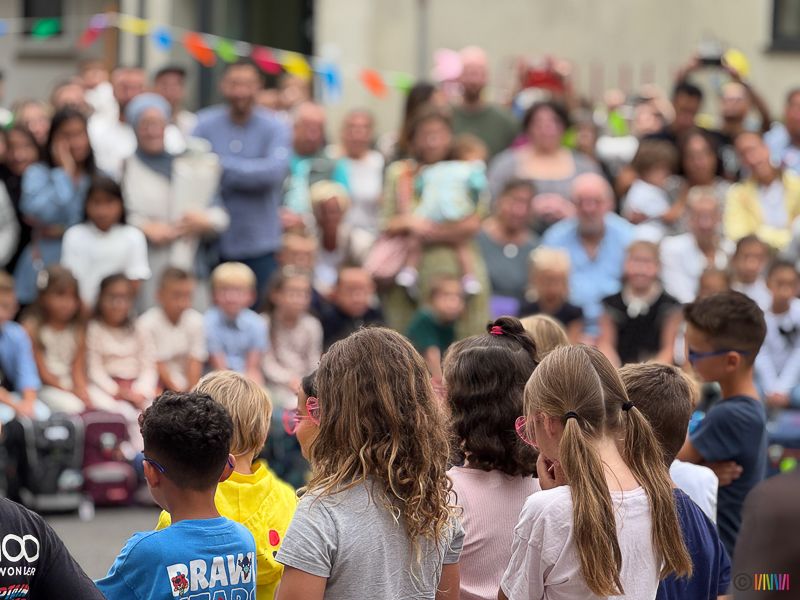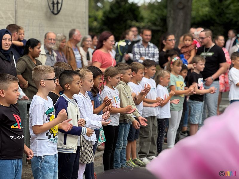 Begleitet wurde die Einschulungsfeier von einem liebevoll gestalteten Rahmenprogramm, das von verschiedenen Klassen vorbereitet wurde. Für Begeisterung sorgten die schwungvollen Tänze zu den Liedern "Verliebte Zahlen" und "Nussstrudel", die eindrucksvoll von älteren Schülerinnen und Schülern präsentiert wurden. Ein besonderes Highlight für die Neuankömmlinge war der Auftritt der Klasse 2a, die mit ihrer Darbietung zum Lied "Green Green Grass" nicht nur unterhielt, sondern die Erstklässler auch zum Mitmachen einlud ganz freiwillig, aber mit spürbarer Begeisterung. So wurde aus der Einschulungsfeier ein fröhliches Miteinander, das Vorfreude auf das kommende Schuljahr weckte.