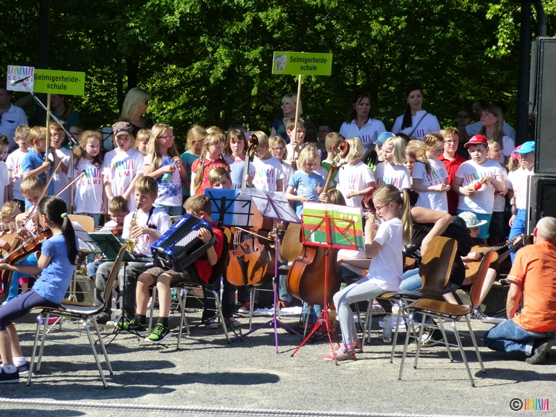 14.05.2014 - JeKi: Vorspiel im Maxipark Hamm" Am Sonntag, 14. Mai drehte sich wieder einmal alles rund um die Musik, als die Hammer JeKits-Kinder gemeinsam mit den fortgeschrittenen SchülerInnen der Musikschule den Park eroberten. Circa achtzig Musikschullehrer waren im Einsatz, um über zweitausend Kindern und Jugendlichen einen unvergesslichen Auftritt zu bescheren. Auch unsere Selmi-Kinder waren vor Ort.