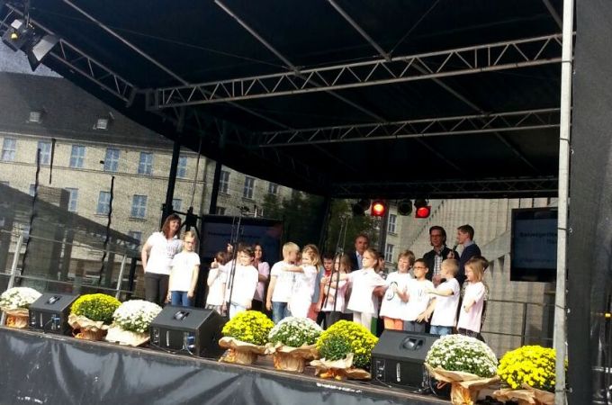 20.09.2014 Die Biberklasse nahm am Schulsingen teil, das vom Stadtmarketing im Rahmen der Aktion "Wir sind echte Hammer" veranstaltet wurde. Auf der Bühne vor dem Heinrich-Kleist-Forum trugen die Kinder das selbst gedichtete Lied "Hagenunu - Hammer sind wir" vor. Von den Sponsoren der Aktion gab es anschließend einen Scheck zur Aufbesserung der
