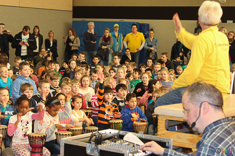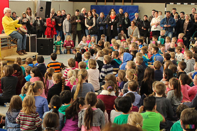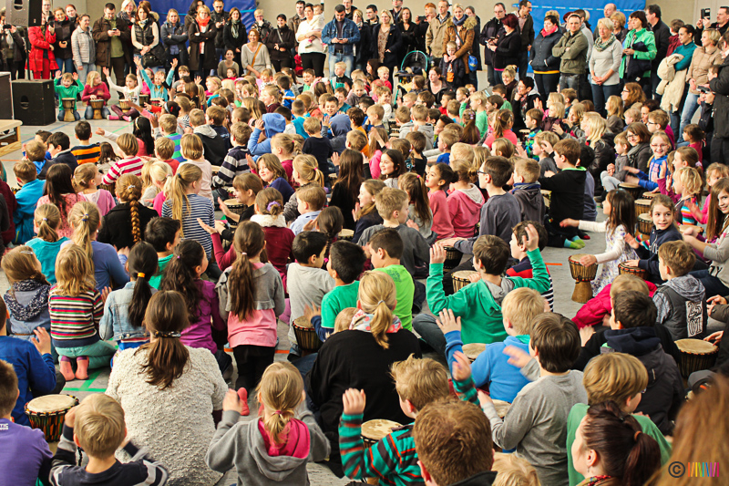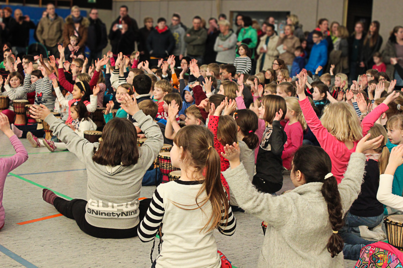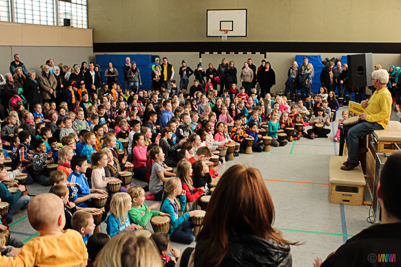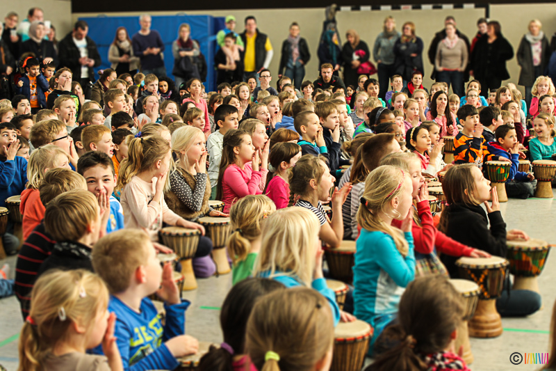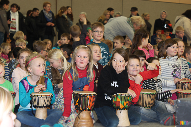13.03.2015 - Trommelzauber. Mit mehr als 300 Trommeln versetzten Johnny und Svobodan die Selmigerheideschule ins Trommelfieber. Begleitet durch rhythmisches Klatschen, Trommeln und einigen Tanzschritten nahmen sie uns mit auf eine Reise in das afrikanische Dorf „Tamborena“. Höhepunkt des Tages war ein gemeinsames Mitmachkonzert am Nachmittag, bei dem Eltern, Geschwister und Freunde eingeladen waren, die Trommler tatkräftig zu unterstützen. Ganz herzlichen Dank an alle Beteiligten!