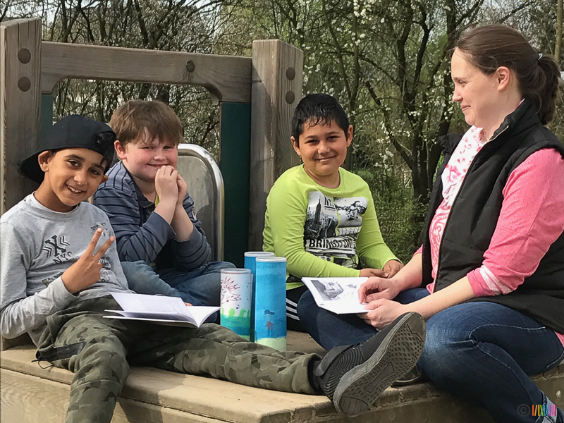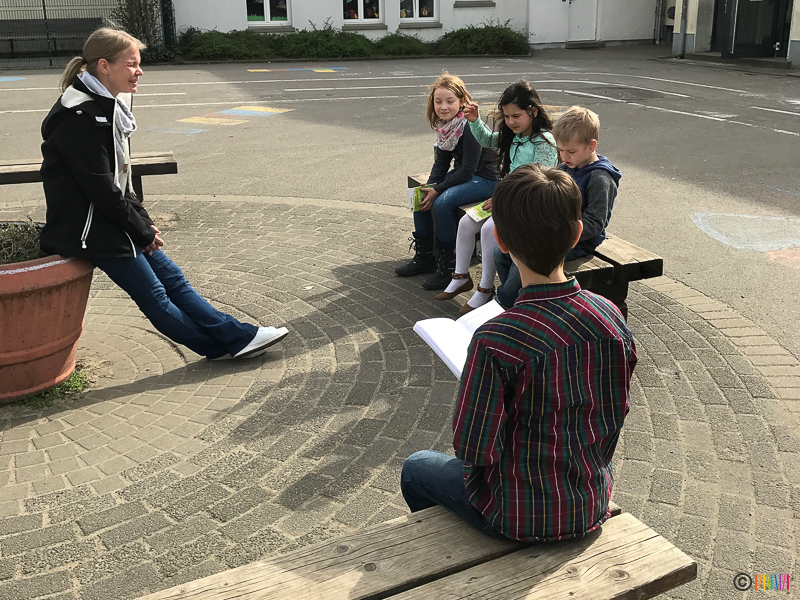 Am Freitag in der 4. Stunde hatten die Eltern und Großeltern dann die Möglichkeit, die Kinder in der Klasse zu besuchen und selbst zu schauen, was in der Lesewoche erarbeitet und gestaltet wurde. Aufgrund des schönen Wetters fanden viele Leseaktivitäten auch auf dem Schulhof statt.