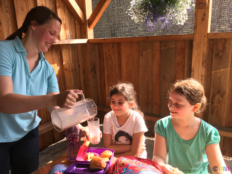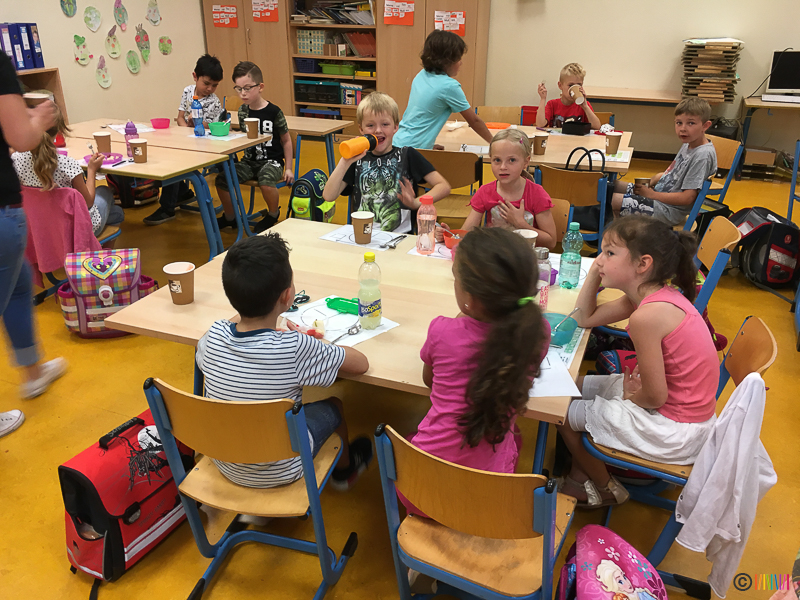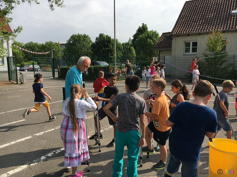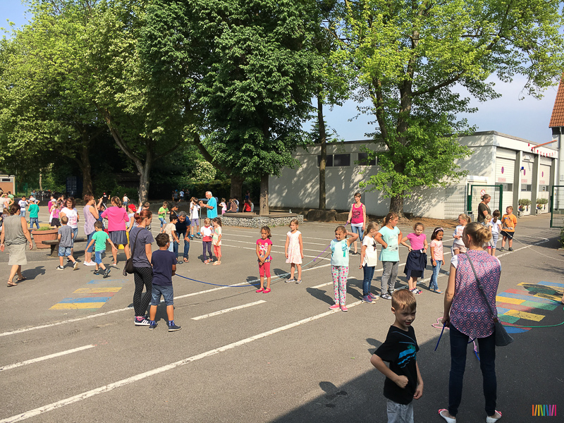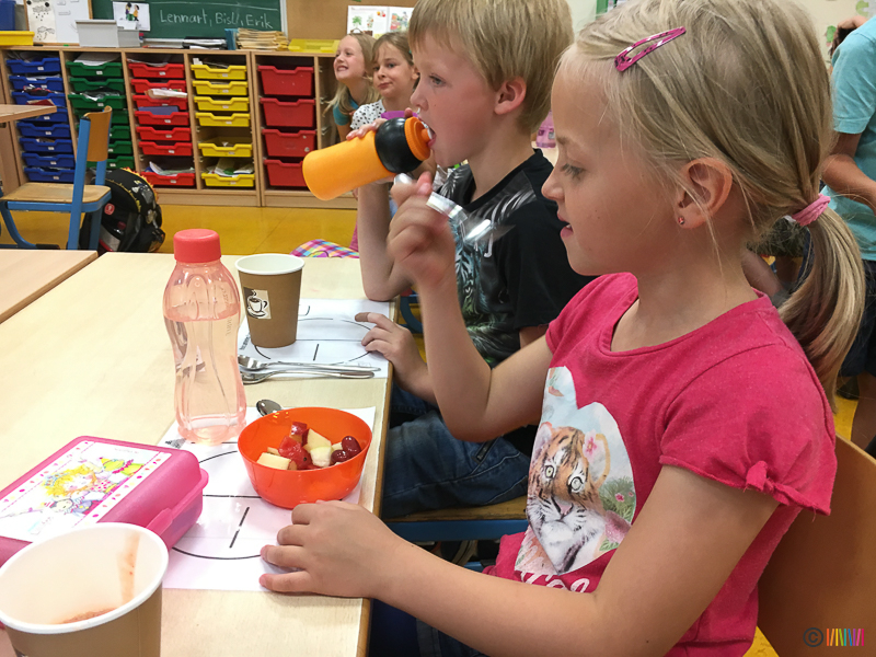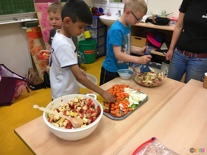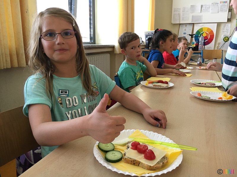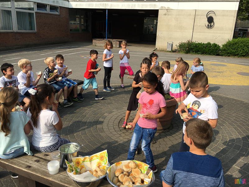 So wurden an zwei Tagen von Eltern alte Pausenspiele wie Gummitwist und Seilspringen angeboten. Ganz im Sinne einer gesunden Ernährung wurden Obst- und Gemüsespieße hergestellt und ein gesundes Frühstück aufgebaut. Gut bei den Kindern kam auch der Besuch eines Baunerhofs und des Wochenmarkts an der Friedenskirche an. Einzelne Klassen konnten auch Kresse einsäen, Jogurt und Smoothies herstellen und Brötchen aus selbst gemahlenem Mehl backen. Es war eine gelungene Woche für die wir uns ganz herzlich bei allen Eltern bedanken.