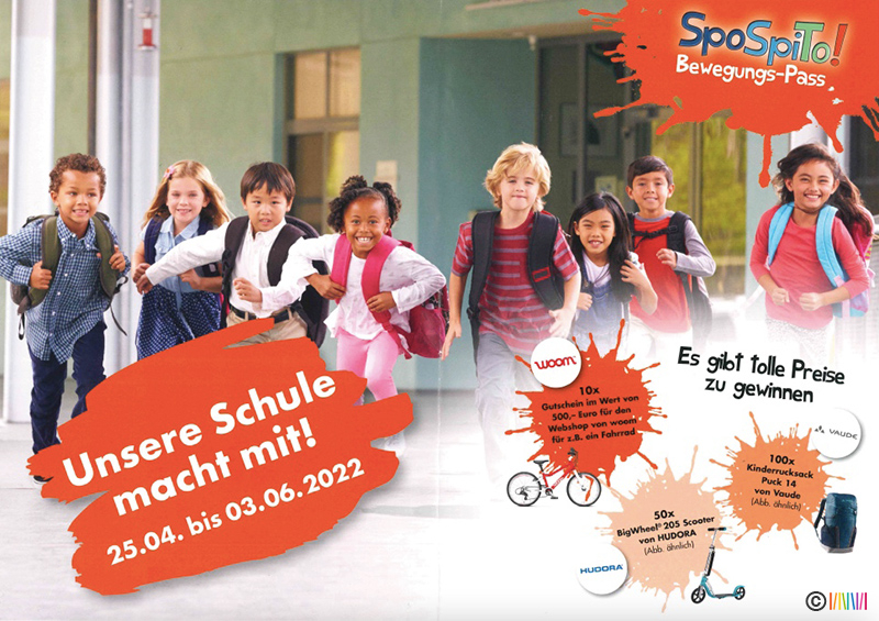 Jedes Kind erhält nach den Ferien einen SpoSpiTo-Bewegungs-Pass. Für jeden Tag zwischen dem 25.04. und dem 03.06., an dem ein Kind den Hin- und Rückweg zur Schule zu Fuß, mit dem Roller oder mit dem Fahrrad (wenn eine Genehmigung vorliegt) zurückgelegt hat, dürfen die Eltern eine Unterschrift in den SpoSpiTo-Pass setzen. Ist die Tabelle mit 20 Unterschriften gefüllt, kann der SpoSpiTo-Bewegungs-Pass bei der Klassenlehrkraft abgegeben werden. Dafür erhält jedes Kind eine SpoSpiTo-Urkunde!!