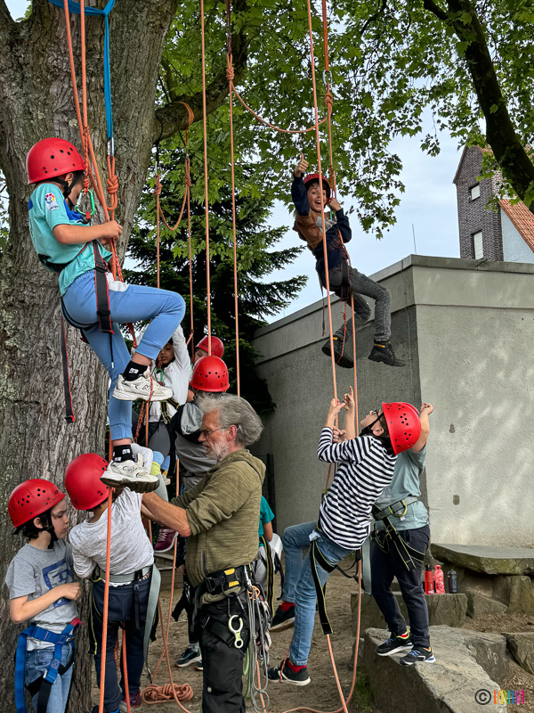 23.05.2024 - Im Mai ermöglichte der Förderverein, den Selmi-Kindern ein besonderes Highlight. Die „Wipfelstürmer“ kamen zu Besuch und gingen mit den Kindern auf Entdeckungstour. Während die Kinder der dritten und vierten Klassen professionell ausgestattet, die Baumwipfel des Selmi-Schulhofs erkundeten, ging es für den ersten und zweiten Jahrgang in den Schulgarten, wo sie mit allen Sinnen die Natur erforschten.