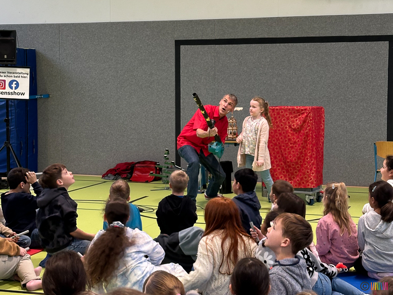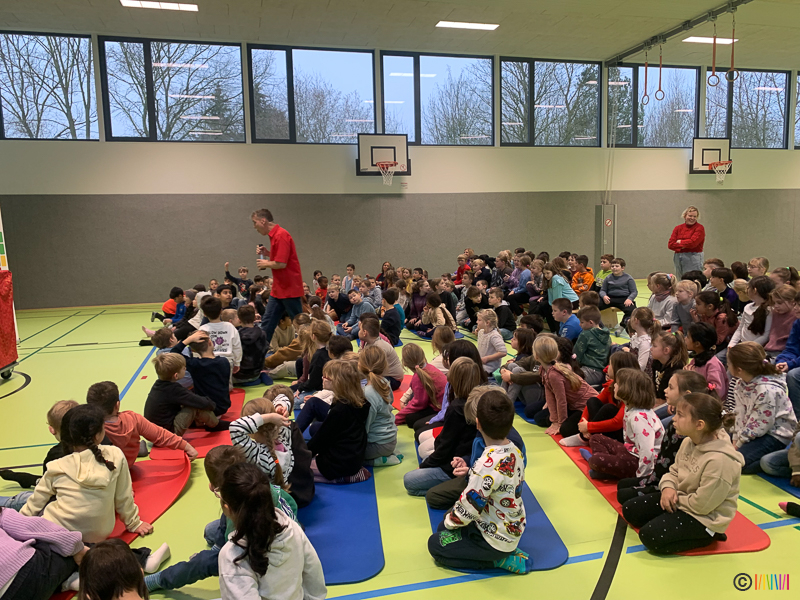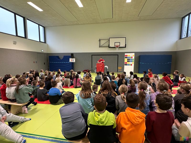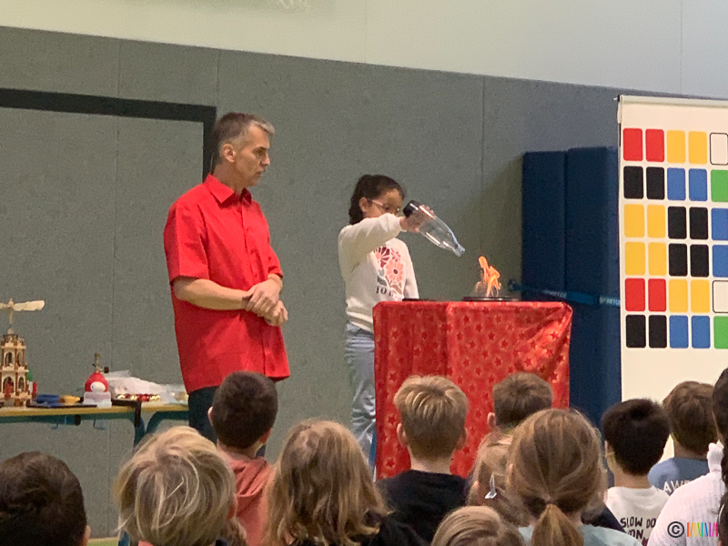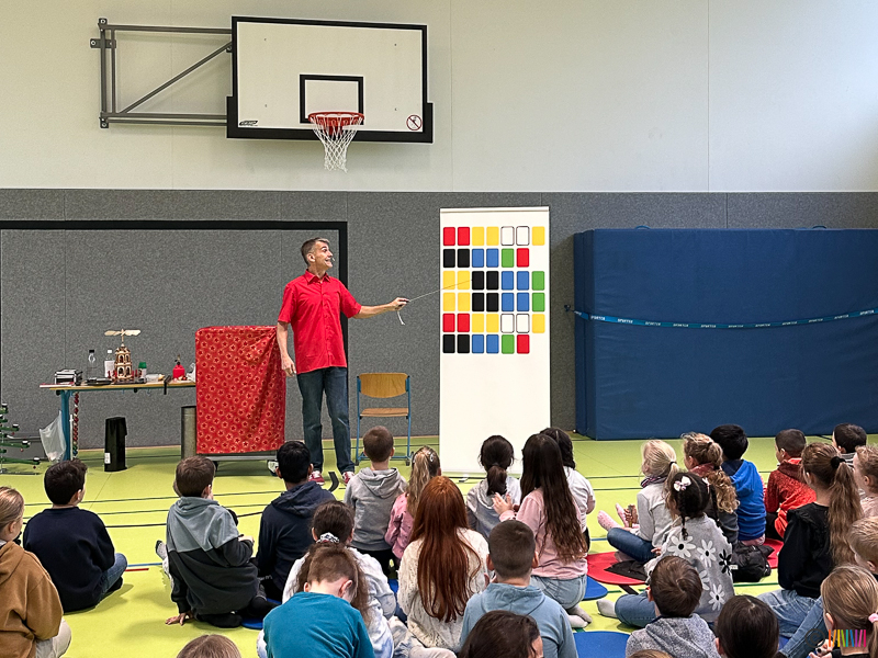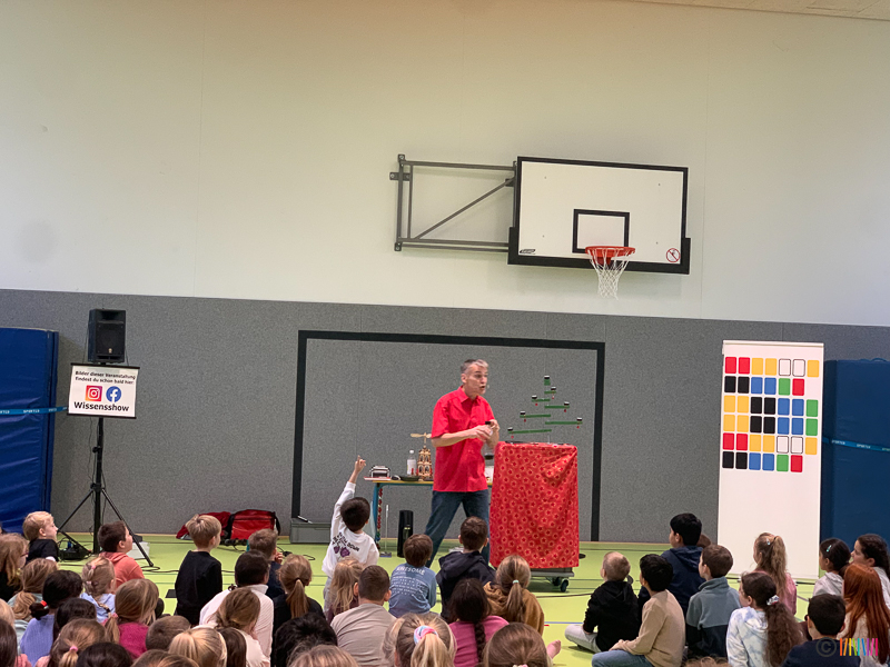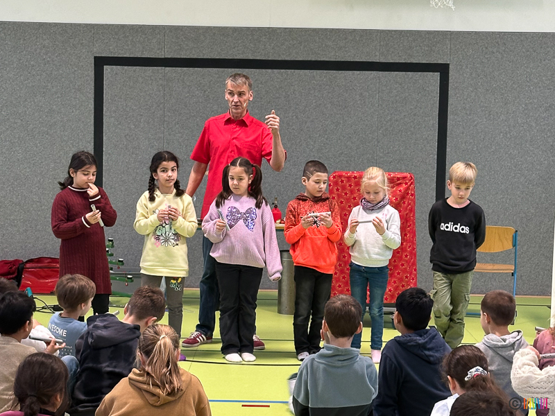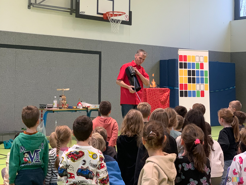11.12.2024 - Am Mittwoch erlebten die Schülerinnen und Schüler der Selmi eine spannende und faszinierende Physikshow in der Turnhalle. Unter der Leitung von Sascha Ott wurden den Kindern auf unterhaltsame Weise verschiedene naturwissenschafte Experimente rund um Weihnachten gezeigt. Die Kinder waren besonders von den praktischen Vorführungen begeistert, bei denen sie selbst aktiv mitmachen konnten.