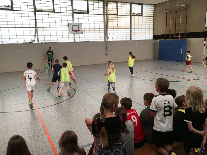 05.07.2017 - Nachdem die Spielerinnen und Spieler der 3. und 4. Jahrgänge in den letzten Tagen heiß um die Finaleinzüge gekämpft hatten, kam es heute zu den entscheidenden Finalspielen. Bemerkenswert fair gab es spannende Partien, die von tobenden Zuschauern begleitet wurden.