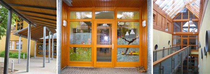 Hier befinden sich die Klassen der Jahrgänge 3 und 4 sowie ein Kunst- und Werkraum.